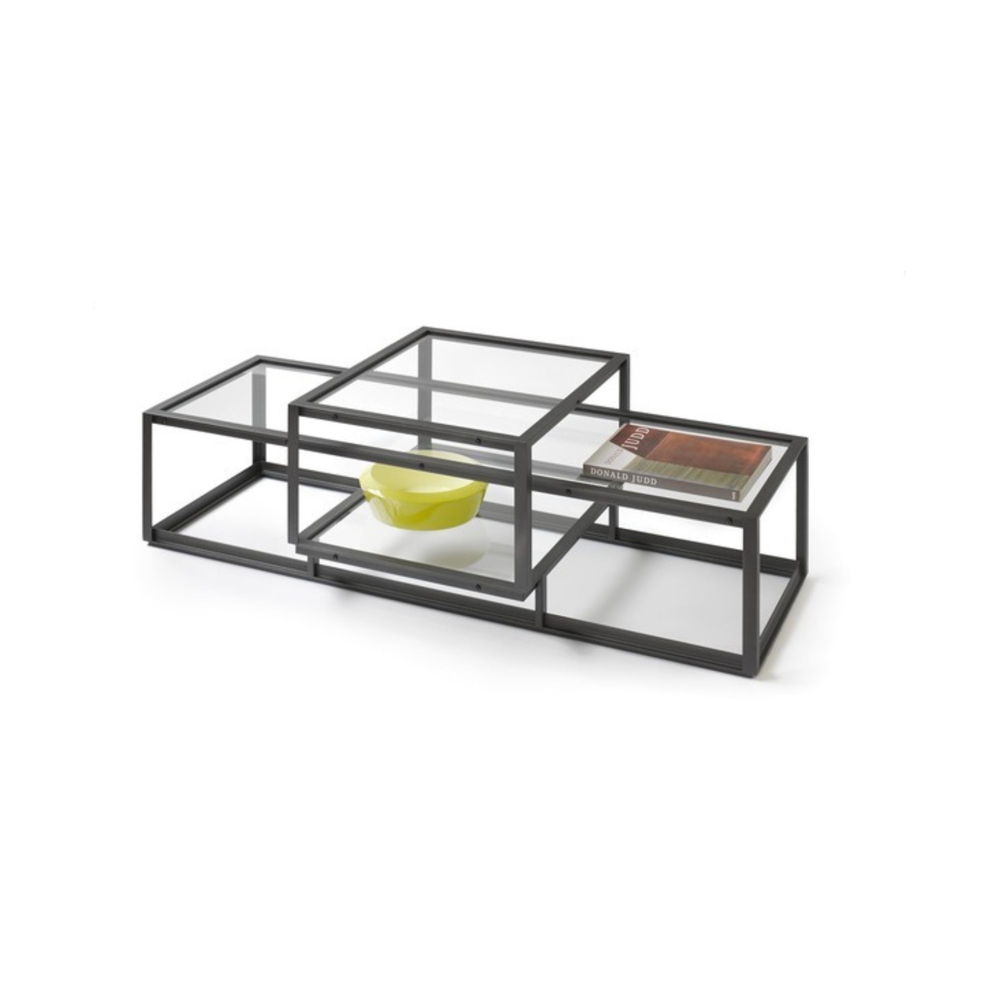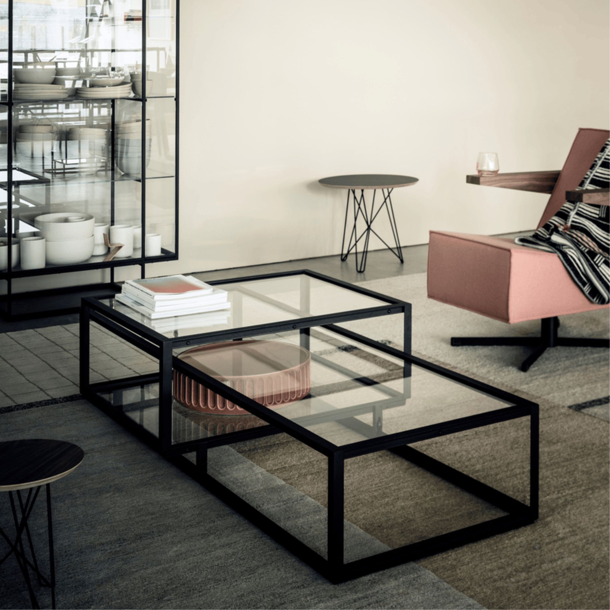 De Tangled salontafel (2015) van Carolina Wilcke verenigt architectuur en kunst in een verfijnd, grafisch ontwerp. Twee stalen volumes grijpen in elkaar tot één elegant geheel, waarbij het kleinere element over de volle breedte verrijdbaar is. Zo ontstaat een dynamische tafel met drie niveaus voor accessoires en decoratie. De Tangled-serie omvat naast deze salontafel ook de Square salontafel, een kabinet, vitrine, bijzettafel en een dienblad dat perfect past op het bovenste tableau.